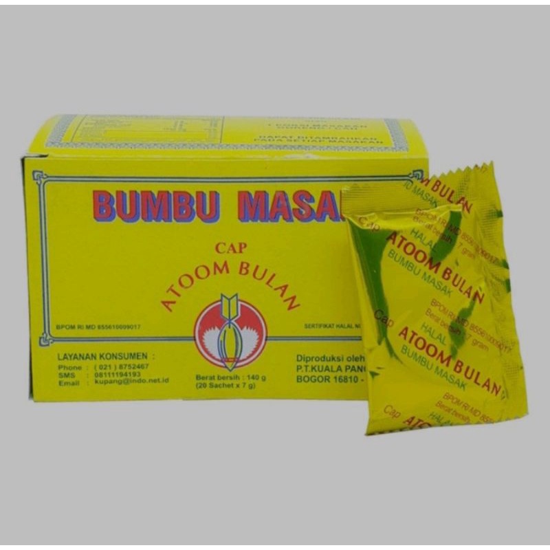 BUMBU PENYEDAP RASA MERK ATOOM BULAN atau Bumbu Masak Cap Atoom Bulan adalah bumbu masak untuk segala macam - macam masakan kuah, masakan gorengan, masakan cah, campuran rasa keripik, kerupuk, cimol, cilok dll. Keunggulan Bumbu masak cap Atom Bulan ini :