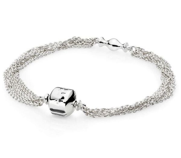 authentic 925 sterling silver bracelet multi-strand one clip station snake chain bangle fit bead charm diy fashion jewelry, Golden;silver