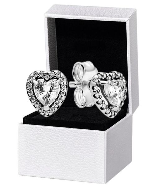 authentic 925 sterling silver elevated heart stud earrings original retail box for rose gold women girls love earring set3978277, Golden;silver