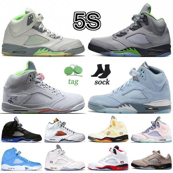 authentic jumpman 5s basketball shoes 5 men women sneakers outdoor trainers white sail blue bird green bean hare quai 54 metallic silver new
