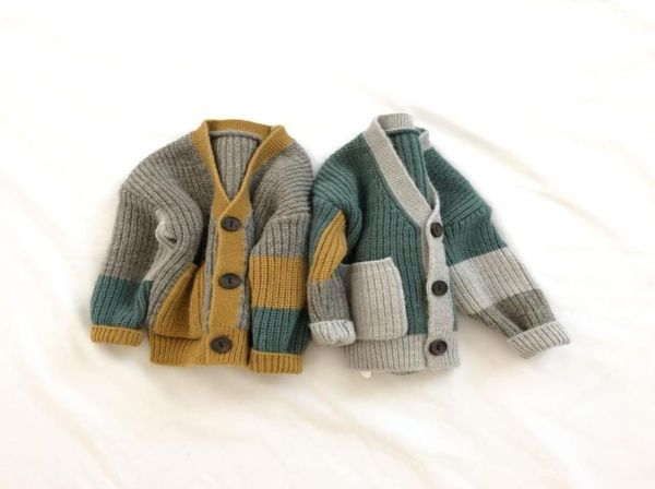 autumn boys girls sweater casual color block cardigans toddler girls jumper knitwear childrens long sleeve pocket sweater2494159, Blue