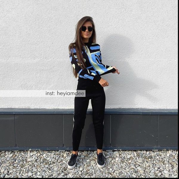autumn european cool camouflage womens tracksuits pattern knitted pullover leggings fashion suit 2piece set women sweatsuits, Gray