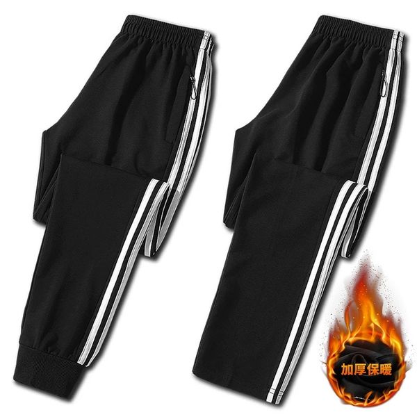 autumn leggings straight pants youth solid color three bar men's casual plush thickened cotton pants winter, White;black