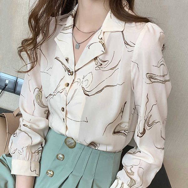 autumn long sleeve v-neck print chiffon blouse shirt female blouse women blusas mujer de moda women clothes blusa d523 210602, White