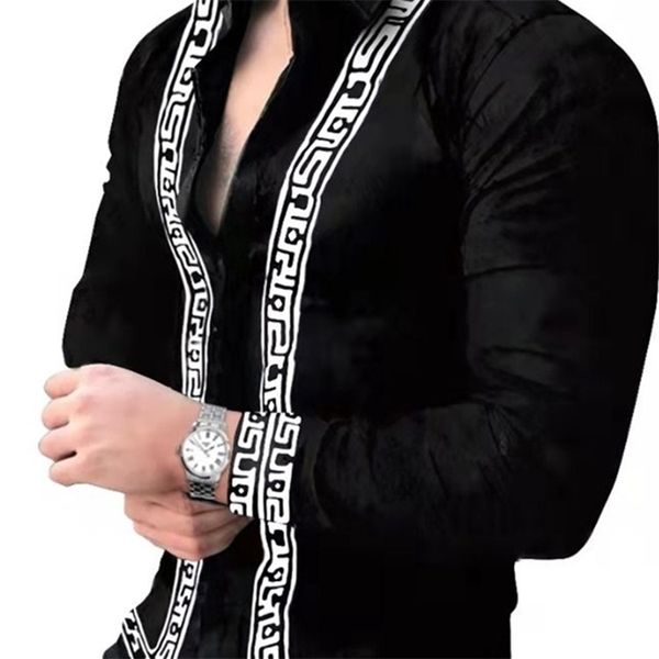 autumn men's printed hawaii casual shirts long sleeve brand clothing turn-down collar slim fit gothic party shirt men 220322, White;black