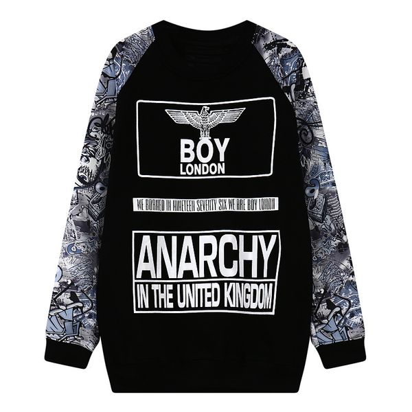 autumn new style harajuku wind couples popular brand printed loose-fit crew neck long sleeve fleece hoodie women's wy0641, Black