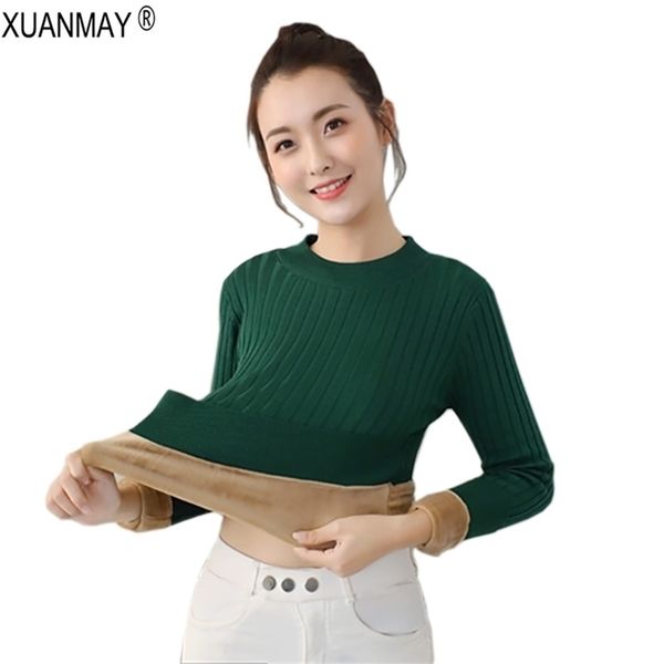 autumn plus thick velvet sweater bottoming shirt lining warm pullover lined sweater female casual black 211217, White;black