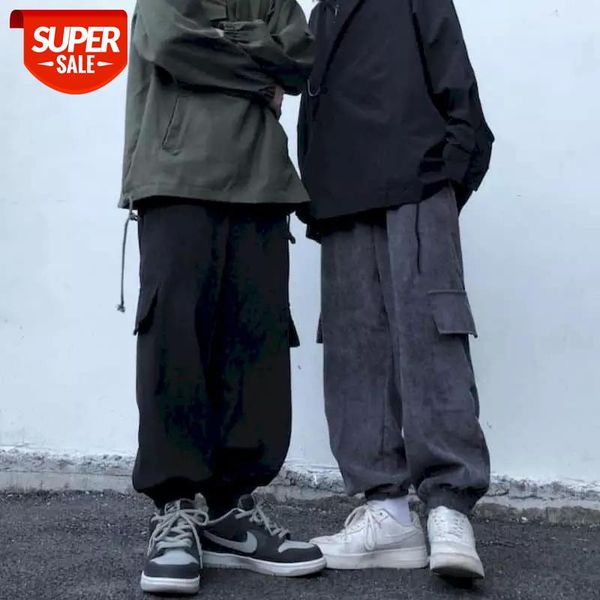 autumn spring corduroy harajuku straight pants men elastic waistband loose harem jogger women streetwear clothing #kc5l, Black;white