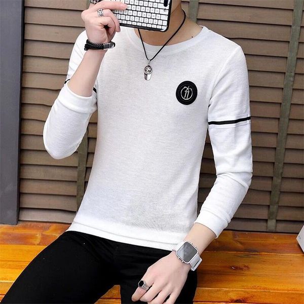autumn spring thin slimming knitted sweater 2018 new streetwear fashion male knitwear warm korean style round collar men k, White;black