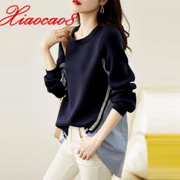 autumn sweatshirts woman oversized hoodie cotton striped o neck hoodies for women patchwork loose long pullovers womens clothing women', Black