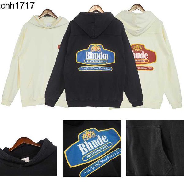 autumn and winter high-quality rhudes 22s fashionable wash water printed letters men's and women's hoodie, Black