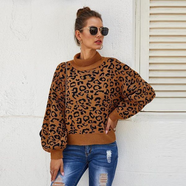 autumn winter leopard jumper sweater women casual knitted turtleneck pullovers for 2021 women's sweaters, White;black
