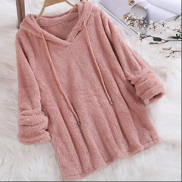 autumn winter long sleeve plush hoodies women blue pink white fluffy hoodies flannel pullover pajama loose hoodie plus size, Black