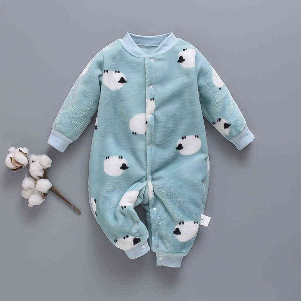 autumn & winter newborn baby clothes dinosaur print baby boy romper warm infant baby boy girl soft fleece jumpsuit pajamas g1221, Blue