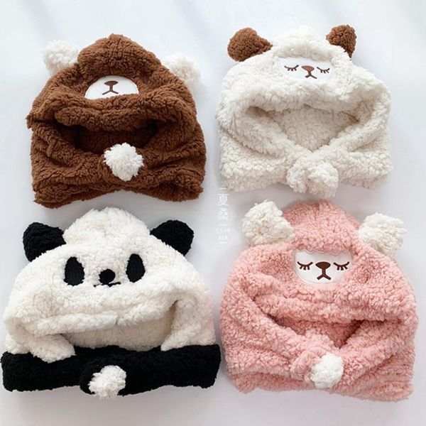 autumn winter plush baby girls hats hooded scarf warm thick kids caps for boys cap accessories &, Yellow