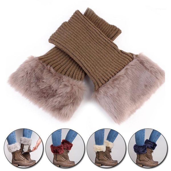 autumn winter solid color casual womens knitted boot cuffs fur knit warm boot socks legs warmers shoes set xmas gift1, Black;white