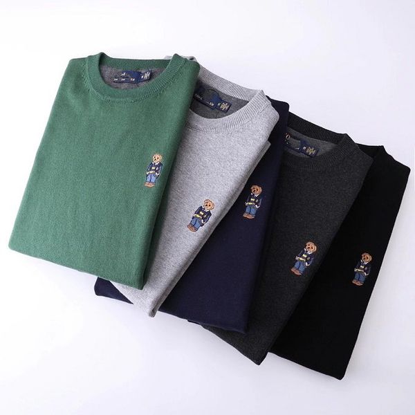 autumn/winter thick men's sweater pullover polo long sleeve 2021 casual round neck mile weft knitted cotton warm 5 colors, White;black