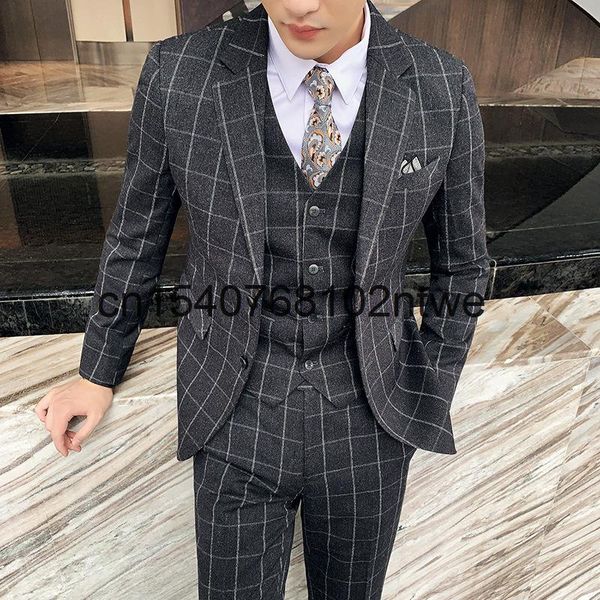 autumn and winter thick suits suit korean version of the slim lattice three-piece wedding dinner dress men's & blazers, White;black