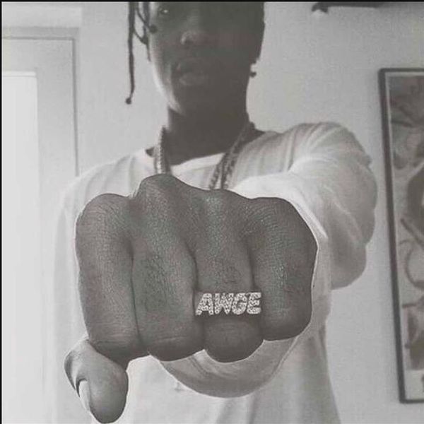 awge classic letter ring finger ring asap rocky with gold and silver two-color spot drilling smooth surface278e, Golden;silver