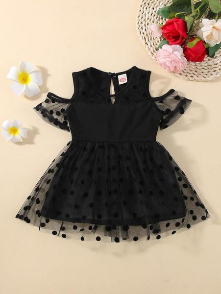 baby contrast polka dot mesh cold shoulder dress she, Red;yellow