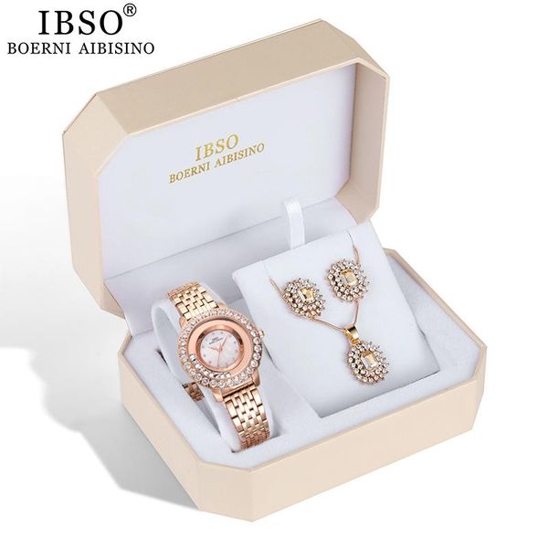 wristwatches ibso brand women's watch set rose gold earring necklace jewelry sets mother's day gift drop, Slivery;brown