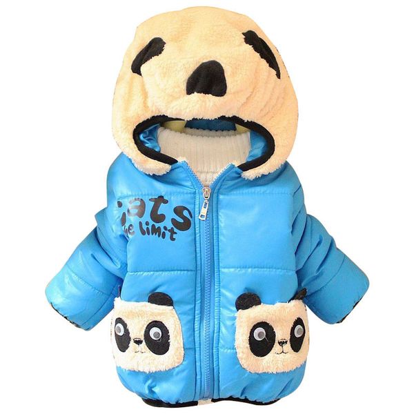 baby girls boys jacket winter warm thick cotton cartoon panda hooded kids coat children lovely outerwear kids clothing, Blue;gray