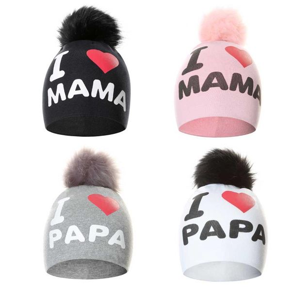 baby hats toddler girls boys knitted pompom hat cute i love papa mama beanie caps children bonnet for kids &, Yellow