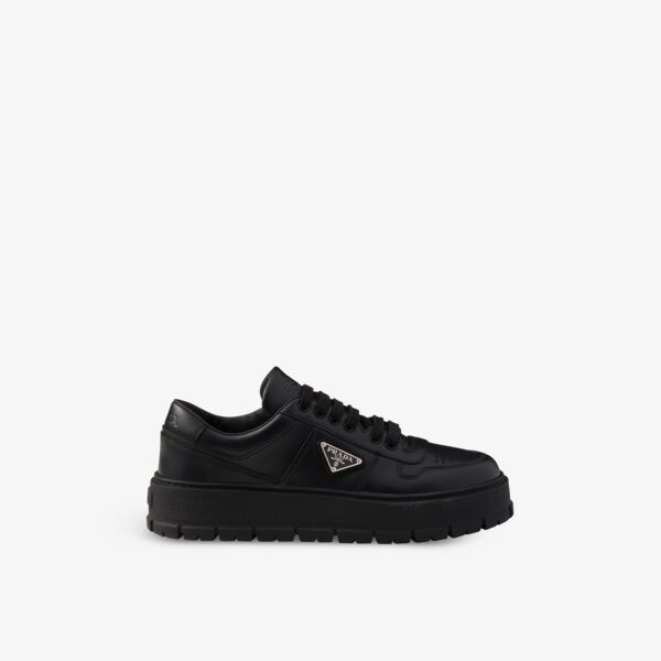 Кроссовки из кожи с низким верхом и шнуровкой Triangle-Plaque Prada, черный