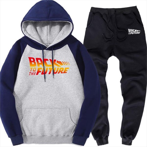 back to the future mens tracksuit male sports suits autumn winter fleece piece sets brand raglan hoodies trousers warm men, Gray