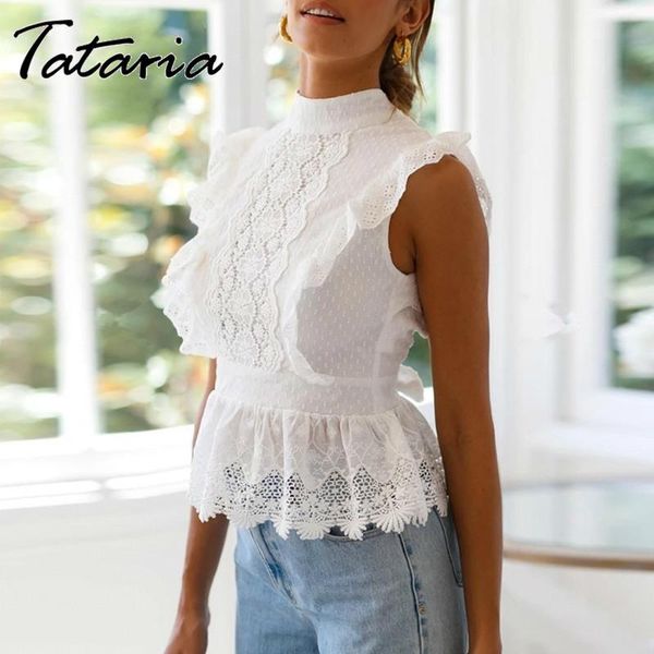 backless кружева вышивка женщины топы ruffled выдалбливают баски tops женский летний стиль streetwear дамы белый футболка, White