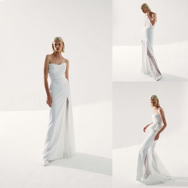 backless mermaid wedding dresses strapless sleeveless side split appliques chiffon wedding dress knee length bridal gown, White