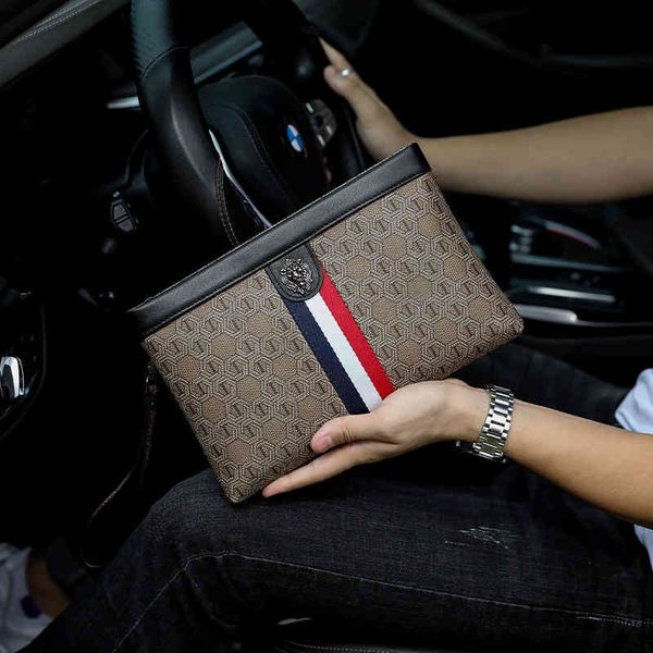 bags handbags leather men's 2021 lattice leisure, Black;red