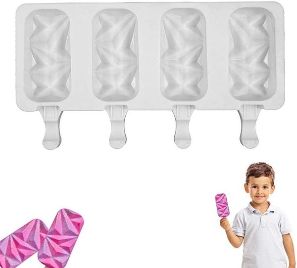 baking moulds 4-cavity silicone ice cream mold diamond big oval diy homemade popsicle dessert lolly maker reusable tool