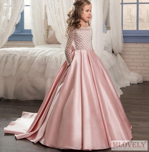 ball gown long lace sleeved kids flower girl pageant dress with for girls aged 511 years9227914, White;red