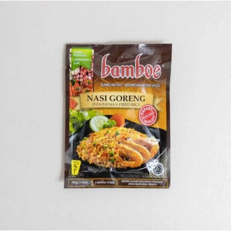 Bumbu praktis untuk masakan khas Indonesia! Bamboe Bumbu Nasi Goreng ini terbuat dari rempah-rempah pilihan seperti bawang merah, minyak nabati, tomat, bawang putih, garam, cabai sehingga bisa membuat olahan nasi gorengmu makin sedap. Dipastikan bebas pengawet dan halal.