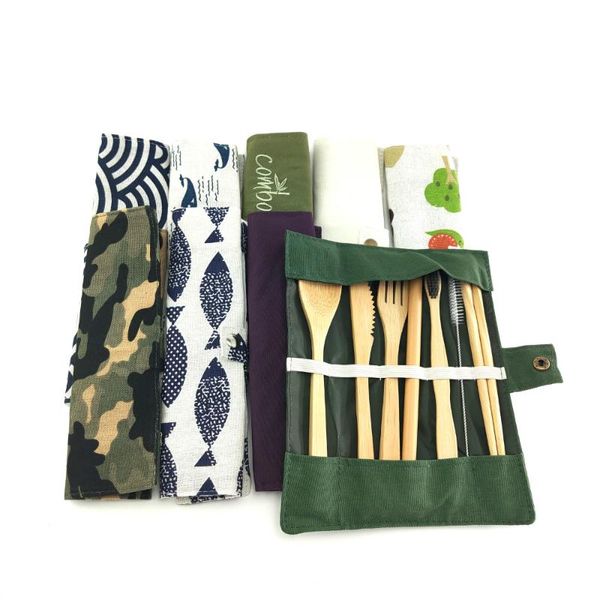 bamboo travel utensils sustainable cutlery set reusable knife,fork,spoon,biodegradable straws chopsticks zero waste wrap dinnerware sets