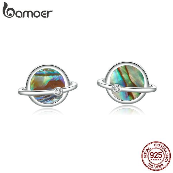 bamoer planet collection stud earrings sterling silver 925 natural stone shell universe ear studs women fashion jewelry bse134