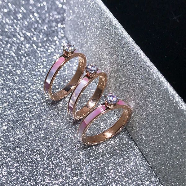 band rings yun ruo mosaic big zircon natural shell wedding ring rose gold color woman gift fashion 316 l titanium steel jewelry never fade a, Silver
