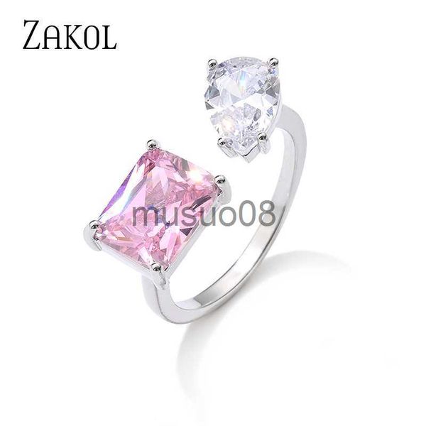 band rings zakol fashion pink square water drop open rings for women shinny cubic zirconia wedding adjustable ring new ins style jewelry j23, Silver