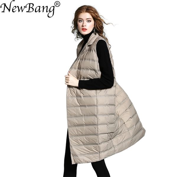 bang brand women's long vest ultra light down vests female sleeveless windproof lightweight warm long waistcoat 210910, Black;white