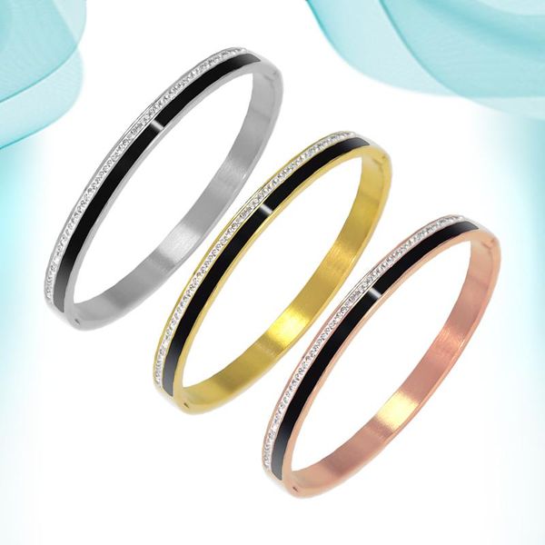 bangle 2021 trendy single row mud diamond epoxy buckle ladies titanium steel fashion simple style women's accessories, Black