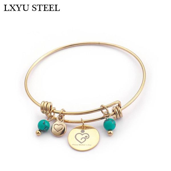bangle blue beads & bracelet for women 64mm stainless steel heart letter happy mother's day charm jewelry, Black