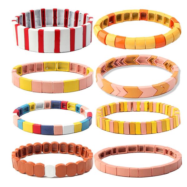 bangle flatfoosie friendship bracelet handmade enamel rainbow tile elastic bead stackable for women jewelry gift, Black