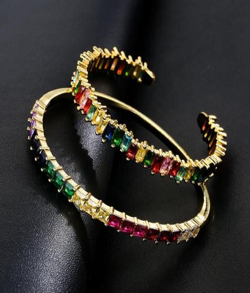 bangle gold filled baguette cubic zirconia bracelet for women men luxury jewelry rainbow cz gorgeous trendy girls gift1695666, Black