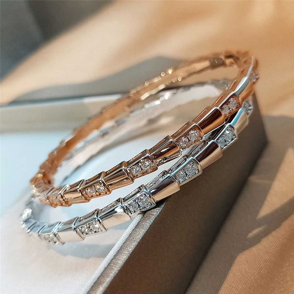 bangle v version bamboo white gold bracelet set with rose gold diamond snake bone simple and versatile bracelet, Black