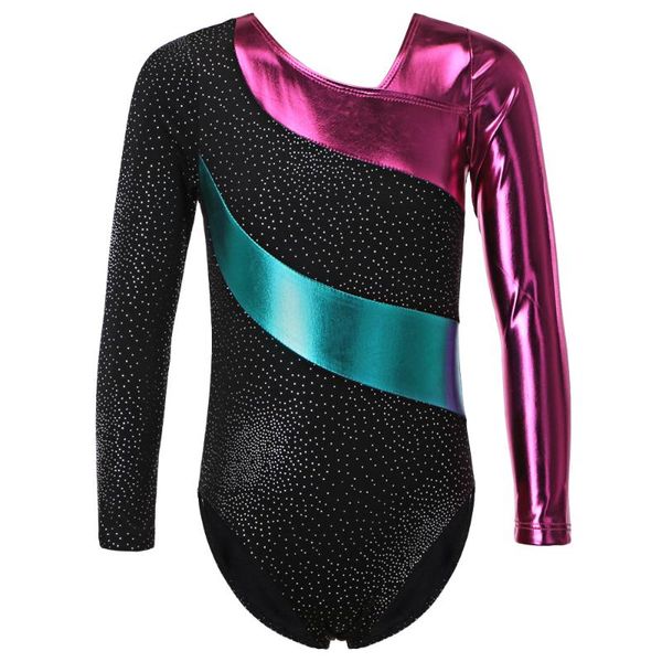 baohulu teens rhythmic ballet long sleeve gymnastics leotard girls shiny rhinestone dance costumes kids ballet leotards dress, Black;red