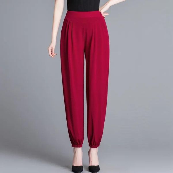 basic solid baggy elastic high waist mom's harem pants casual summer ankle banded bloomers plus size ankle-length women women's &, Black;white