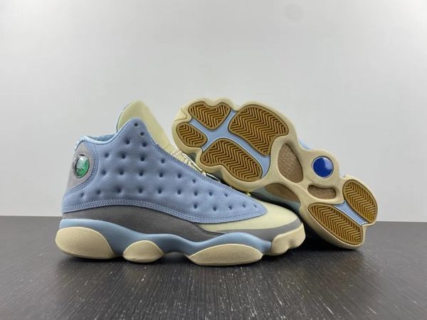 basketball shoes solefly jumpman 13 13s high co-branding white university blue neutral grey muslin suede gum light brown unc men luxury athl