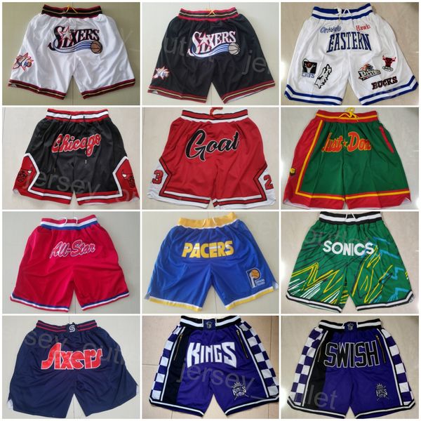 basketball shorts team just don sport short hippop pant stitched with pocket zipper sweatpants running wear joel embiid buddy hield richaun, Black