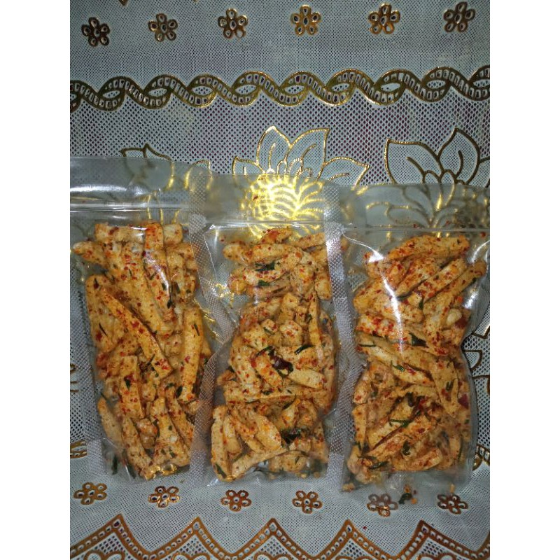 basreng mercon 12000 dapet 3pcs masing masing 70g, dengan aroma daun jeruk yg khas, cocok untuk menemani anda saat santai atau teman makan nasi dan bakso.